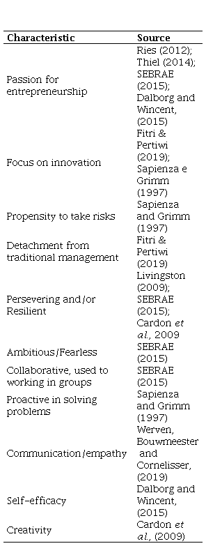Despite the scarcity of studies, it is observed that the predominant profile of founders has been characterised being as composed of individuals who are achievers even in the face of uncertainty, determined to do the right things and are persevering and resilient (Livingston, 2009). In the research conducted by SEBRAE (2015), the following behavioural characteristics and personality traits were also found: ambitious, passionate about entrepreneurship, without any sense of hierarchy, collaborative, accustomed to teamwork, creators of companies intended for sale (in lots of shares or the whole company), bold, fearless in a crisis, but also resilient. Resilience is also perceived by Sharma and Rautela (2021) as a characteristic that stands out in the behavior of small business owners.