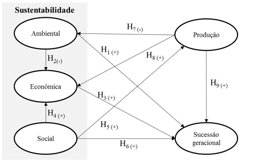 Com o intuito de melhor elucidar todas as hipóteses entre os temas centrais desta pesquisa (sustentabilidade, escala de produção e sucessão geracional), é apresentado, na Figura 1, um esquema que sintetiza a relação entre as hipóteses apresentadas.