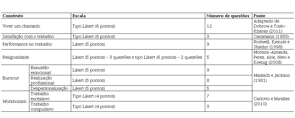 Palavras-chave: Chamado Ocupacional, Teoria do Trabalho como um Chamado, Chamado atendido, Burnout Religiosidade..