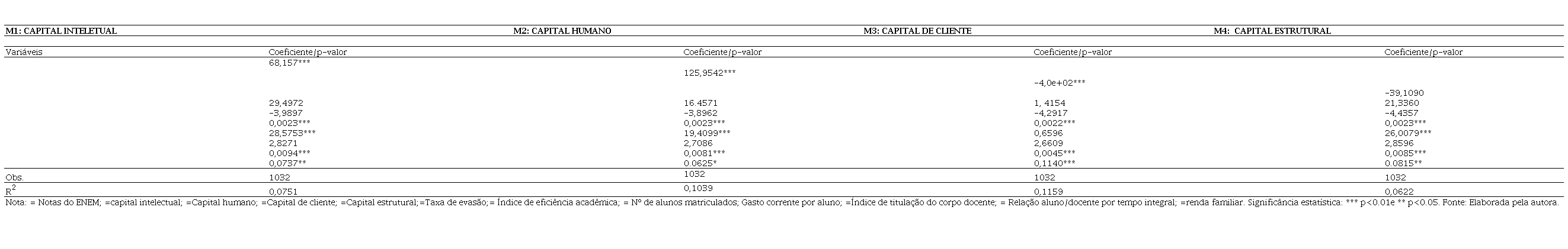 Keywords: intellectual capital, ENEM, performance, ordinary least squares, federal institutes.
