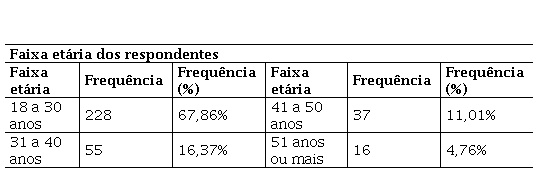 A tabela 2 demonstra a distribuição de frequência referente à faixa etária dos participantes dos questionários: