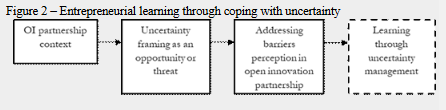 The article presents theoretical and managerial contributions. As a theoretical contribution, we advance the discussion on entrepreneurship learning, uncertainty, and open innovation, by investigating the micro-foundations involved in entrepreneurial learning and uncertainty perception in open innovation, given multiple criteria, through theory building elaboration (Van Burg, 2020). From a managerial perspective, we indicate how entrepreneurs exploit opportunities in open innovation partnerships, facilitating the learning process and decision-making in uncertain contexts and dynamics..