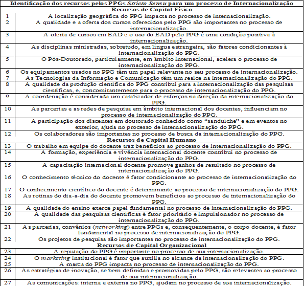 Keywords: Resource-based view, Internationalization, Higher education institutions, Graduate programs, Stricto sensu.