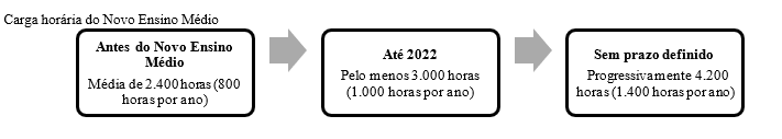 abordagens pedagógicas, tendo em vista a modernização e o estabelecimento de uma aprendizagem mais próxima do interesse das novas gerações; e ampliação da carga horária, conforme ilustrado na Figura 1, com o objetivo de desenvolver os estudantes de forma integral, em seu projeto de vida e nos aspectos socioemocionais (Brasil, 2018).