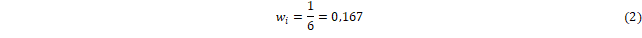 Além disso, Figueira & Roy (2002) explicam que compreender as preferências dos decisores e atribuir pesos aos critérios são desafios significativos na elaboração de um método de suporte à decisão. Neste pressuposto, o peso foi distribuído igualmente para todos os critérios do método, conforme mostra a Equação 2.