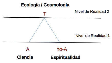 Basado en los postulados filosóficos y epistemológicos de la fenomenología que presenta la física cuántica, Lupasco (1994) rompe con el imaginario de una realidad unidimensional, donde dos niveles adyacentes de la realidad están ligados por la lógica del tercero incluido. Del mismo modo que hay diferentes leyes físicas que gobiernan en cada nivel ontológico de la Naturaleza (macro, meso y micro), nuestra percepción humana también tiene diferentes niveles de entender nuestra realidad. Mientras que cada entidad cuántica tiene la dualidad onda-partícula –integrando de forma simultánea los conceptos clásicos de “onda”(A) y “partícula”(no-A) al mismo tiempo– el “estado T” actúa como un quanta que integra diferentes elementos y fenómenos con un abordaje polilógico. Esto significa que diferentes lógicas actúan juntas en el mismo espacio y tiempo, a pesar de sus contradicciones. Por eso el pensamiento complejo logra percibir el nivel de la realidad 2, que constituye el axioma lógico que integra la ciencia y la religión: actuando como el tercero incluido que las unifica y las complementa. Desde esta visión cosmoderna, la naturaleza y el cosmos actúan dando coherencia a las diferentes construcciones culturales históricas y epistemológicas que se han creado durante la historia de la humanidad para explicar nuestra realidad ontológica.
