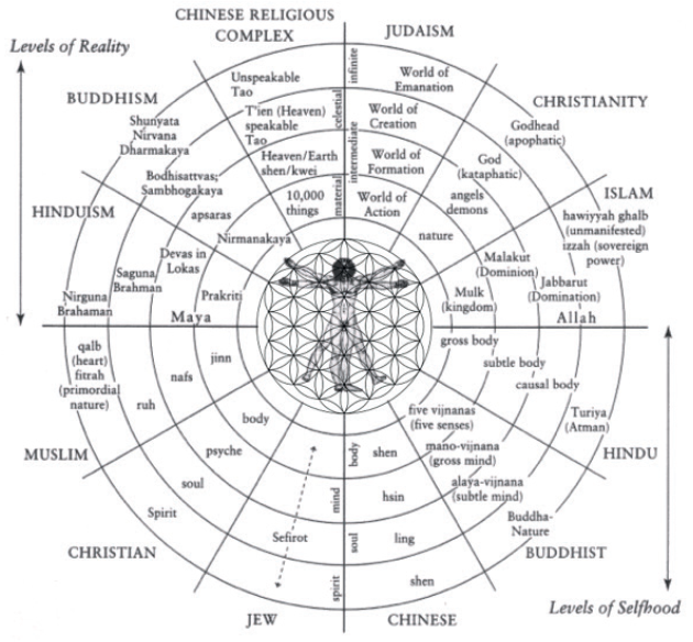 Sin bien este espacio no permite hacer un estudio interreligioso meticuloso con todos los detalles característicos de cada bloque epistémico, no cabe duda que un nuevo espacio espiritual global comienza a emerge del diálogo horizontal entre las religiones. Este diálogo con aspectos interreligiosos evidencia que la consciencia humana evoluciona hacia la integración con lo sagrado desde diferentes espacios y tiempos históricos, aunque cada perspectiva religiosa da un valor diverso a la naturaleza de la realidad. A pesar de las numerosas diferencias entre las religiones, la mándala apunta a la idea milenaria de la “Gran Cadena del Ser”, es decir, a la idea de que la realidad es una red entretejida de niveles de consciencia alcanzable desde la materia, el cuerpo, la mente, el alma y en última instancia la fuente divina, el Tao, el Nirvana. Las introspecciones espirituales nos revelan un entendimiento de la sacralidad donde la vida está interconectada radicalmente en todos los niveles. La naturaleza nos invita a desarrollar la espiritualidad mediante nuestro propio espíritu judeo-cristiano, fitrah islámico, shen chino, Buddha-dhatu budista y atman hindú para estar en armonía con lo sagrado.