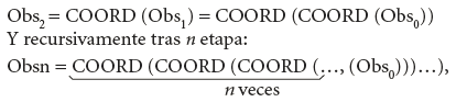 Obsérvese que bajo esta forma el horror infinitatis de la expresión ha desaparecido, todas las expresiones COORD son infinitas y ha emergido una nueva característica,a saber: la variable dependiente Obs∞ y también, por decirlo de alguna manera, la “auto dependiente” o “autodefinidora” o también “auto reflexiva”, gracias al operador COORD.