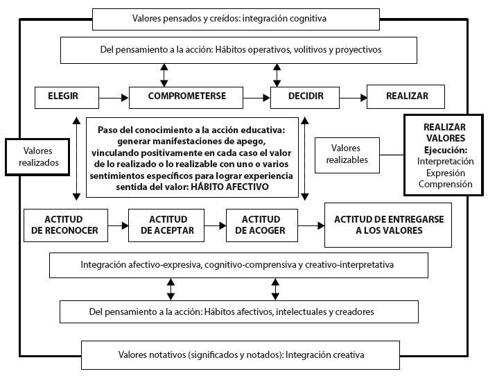 En la relación educativa se efectúa el paso del conocimiento a la acción, realizando, por medio de la actividad común, la concordancia entre valores educativos y sentimientos en cada intervención pedagógica, de manera que así se haga efectiva la educación de calidad en cada interacción.