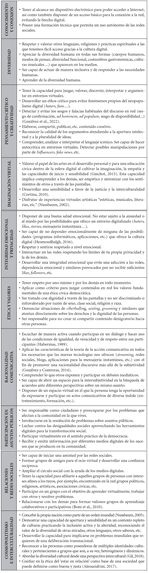 En este marco de ideas, las capacidades se entienden como oportunidades y habilidades que deben ser promovidas en las sociedades actuales, sobre todo en la juventud, puesto que los más jóvenes representan el colectivo que más horas invierte en la red ya sea visualizando, compartiendo o creando contenido. Precisamente, del papel de las instituciones sociales y educativas depende que la ciudadanía desarrolle estas capacidades con responsabilidad a partir del buen uso de la libertad y la racionalidad porque —en forma de referentes prácticos y axiológicos— estas capacidades representan la posibilidad de expandir la libertad de las personas en una sociedad digitalizada, empoderándolas y capacitándolas desde el punto de vista social, político y ciudadano. En relación con esta última idea, la Unesco, a través del informe Indicadores de Desarrollo Mediático (2008) y más tarde a través de la MIL Alliance: Media and Information Literacy (2018), hace hincapié en la necesidad de educar en iniciativas sociomorales a los considerados nativos digitales, al declarar que esta condición no garantiza en absoluto el desarrollo de una competencia mediática. Generalmente los adolescentes poseen una instrucción técnica avanzada sobre los medios digitales, no obstante, la competencia mediática va más allá y necesita de un conjunto de capacidades básicas como las propuestas planteadas en la tabla 1.