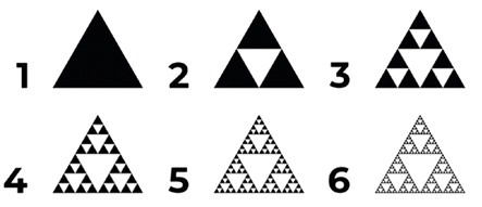 Olexandrgodomich. 2022. Pasos de construcción del triángulo de Sierpinski. Dreamstime.com. https://bit.ly/3NIz1bq