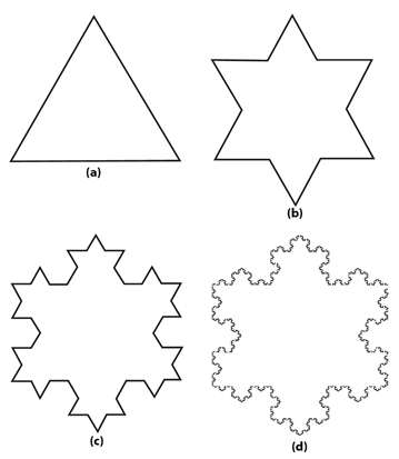 De la misma forma, la cuestión acerca de cuántas dimensiones tiene una figura depende de la geometría en la que nos ubiquemos. Incluso, la dimensión podría no ser un número entero, como ocurre entre los fractales. Precisamente, la teoría de los fractales fue propuesta por Mandelbrot (1983). Esta es una teoría científica que pretende estudiar los patrones que rigen las fracturas, las rugosidades y las grietas. Escribe Benoît Mandelbrot: “¿Por qué a menudo se describe la geometría como algo “frío” y “seco”? Una de las razones es su incapacidad de describir la forma de una nube, una montaña, una costa o un árbol. Ni las nubes son esféricas, ni las montañas cónicas, ni las costas circulares, ni la corteza es suave, ni tampoco el rayo es rectilíneo” (Mandelbrot, 1983, p. 15). Los fractales son objetos matemáticos cuya estructura básica, irregular o fragmentada, se repite a escalas diferentes. Tienen los siguientes rasgos: son muy irregulares, son autosimilares y sus dimensiones vienen dadas por números fraccionarios.