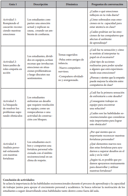 En el aspecto metodológico, este trabajo se surge de una revisión de teorías sobre el desarrollo socioemocional. Se analizan las principales teorías que explican cómo se desarrollan las habilidades socioemocionales y su impacto en el aprendizaje y el comportamiento de los estudiantes. Se consideran los elementos pedagógicos, es decir, los diversos enfoques pedagógicos que han demostrado ser efectivos en la enseñanza y el desarrollo de habilidades socioemocionales en diferentes contextos educativos. Por otro lado, se exploran las estrategias prácticas para la implementación y el desarrollo de estas habilidades en el aula, incluyendo programas curriculares, actividades extracurriculares y formación del profesorado. El proceso involucró la participación activa del docente, quien asumió el rol inicial en la intervención mediante la entrega de instrucciones y guías para el desarrollo de las habilidades socioemocionales en una actividad curricular sobre ética y sus aplicaciones en diversos contextos, realizada de manera virtual en un centro de educación superior de Chile