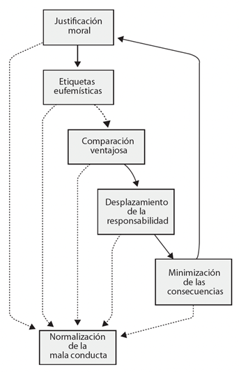 El trabajo posterior de Bandura (2016) sobre la desconexión moral describe el bucle cognitivo que accionan las personas cuando quieren comportarse de forma poco ética sin sufrir remordimientos.