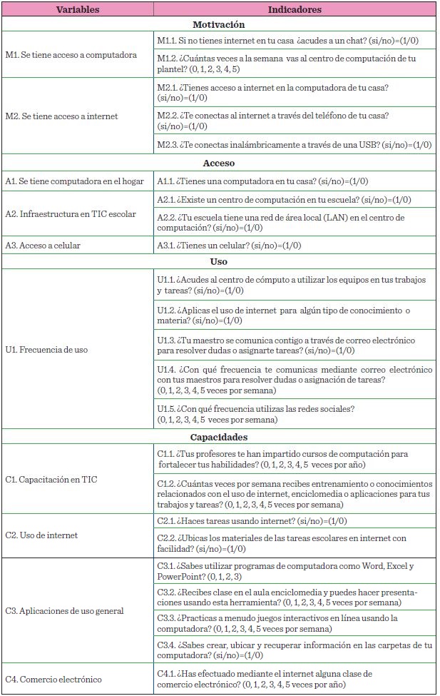 Se utilizó el cuestionario de la Conferencia de las Naciones Unidas sobre Comercio y Desarrollo (UNCTAD), para medir los indicadores básicos del uso de las TIC en las empresas u organizaciones (ONU, 2015), mediante una rigurosa adaptación para evaluar la brecha digital en el sistema educativo tamaulipeco, el cual cumplió con la validez de contenido es tándar del instrumento (Corral, 1999). Los datos se validaron con alpha de Cronbach, descritos en líneas adelante.