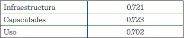 Las cuatro variables: motivación, acceso, capacidades y uso, fueron redimensionados con el apoyo del paquete SPSS a partir de los 23 indicadores que se describen en la Tabla 1. Las relaciones entre las variables se establecieron, al utilizar la capacidad predictiva de ellas, en función de los ítems originales de la encuesta. El análisis estadístico se realizó mediante una regresión lineal múltiple de las variables consideradas independientes: motivación, acceso y capacidades contra la variable definida dependiente: uso, para probar el poder explicativo y la influencia que tenían sobre la variable que representa la intensidad de uso de las TIC, en base el modelo de Van Dijk (Figura 1). Se aclara que en la regresión múltiple se utilizaron las aditivas de las dimensiones puestas en juego para la evaluación del modelo utilizando la metodología de Toudert (2014).