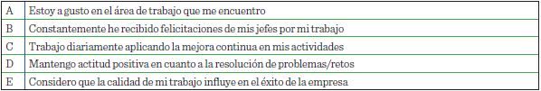 El procedimiento utilizado para el desarrollo del instrumento de la presente investigación fue tomar como base lo que recomiendan McGartland y col. (2003) y Sinaiko y Brislin (1973), ya que se solicitó el apoyo de una persona de habla inglesa como lengua materna, para que hiciera la traducción del instrumento de medida al castellano. Posteriormente, con dos expertos y conocedores del tema, se revisó la claridad del texto resultante, en cuanto a redacción y comprensión de cada una de las preguntas, utilizando como referencia de comparación los instrumentos de medida que presentan Kopelman y col. (2008), Kopelman y col. (2010) y Kopelman y col. (2012). Después de revisar detenidamente el contenido de cada una de las preguntas se procedió a elaborar el cuestionario final para ser utilizado en el trabajo de campo (Tabla 2).
