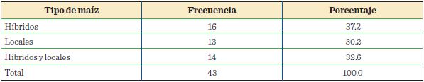 Por otro lado, la valoración que se realiza por parte de los productores, cuyos cultivares son sembrados con maíces locales, demuestra que el conocimiento de estos, constituye una fuente de información valiosa, el cual está sustentado sobre la base de su experiencia en el manejo de los sistemas de producción tradicional y el amplio conocimiento en el uso de los recursos genéticos (Gómez y col., 2014). En este contexto, se observó una clara estrategia por parte de los productores, al incluir ambos tipos de cultivo (32.6 % en Villa Corzo y 25 % en Villaflores) (Tablas 4 y 5). Los maíces híbridos, con el objetivo de alcanzar rendimientos altos, siempre y cuando se presenten las condiciones climáticas adecuadas y se usen los insumos requeridos; y la siembra de maíces locales, como parte de su estrategia productiva, traducida en la seguridad alimentaria de sus familias.