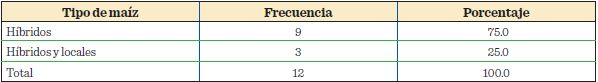 En municipio de Villa Corzo, el 37.2 % de los productores sembraba maíz híbrido ofertado por las empresas nacionales (PROASE o American Seed and Genetics) o transnacionales (Pioneer y Dekalb); un 30.2 % prefería sembrar únicamente maíz local y el 32.6 % optaba por la siembra de ambos tipos de maíz (Tabla 2). En el municipio de Villaflores, el 75 % de los productores sembraba maíz híbrido; no se registraron productores que sembraran de forma única los maíces locales; 25 % sembraba ambos tipos de maíz, lo que difiere con Guevara y col. (2013), quienes manifestaron no haber encontrado productores con cultivares de maíces locales en el municipio de Villaflores. Los productores de Villaflores, que en promedio eran más jóvenes (Tabla 1), mostraron preferencia por los maíces híbridos y en menor porcentaje por la siembra de ambos maíces (híbridos y locales) (Tabla 3). Por su parte, los productores de Villa Corzo, que en promedio tenían mayor edad (Tabla 1), además de considerar las opciones antes mencionadas, también consideraban la siembra de maíces locales como una sola opción. Estos criterios, para la selección de sus cultivares, pudieran estar influenciados por la edad del productor y su nivel de escolaridad, como se ha encontrado en estudios similares (Ramos y col., 2013). Sin embargo, pudieran estar relacionados también, con las costumbres desarrolladas en sus comunidades, donde año tras año de siembra, han usado solamente maíces locales como alternativa viable para el consumo animal y humano (Fernández-Suárez y col., 2013).