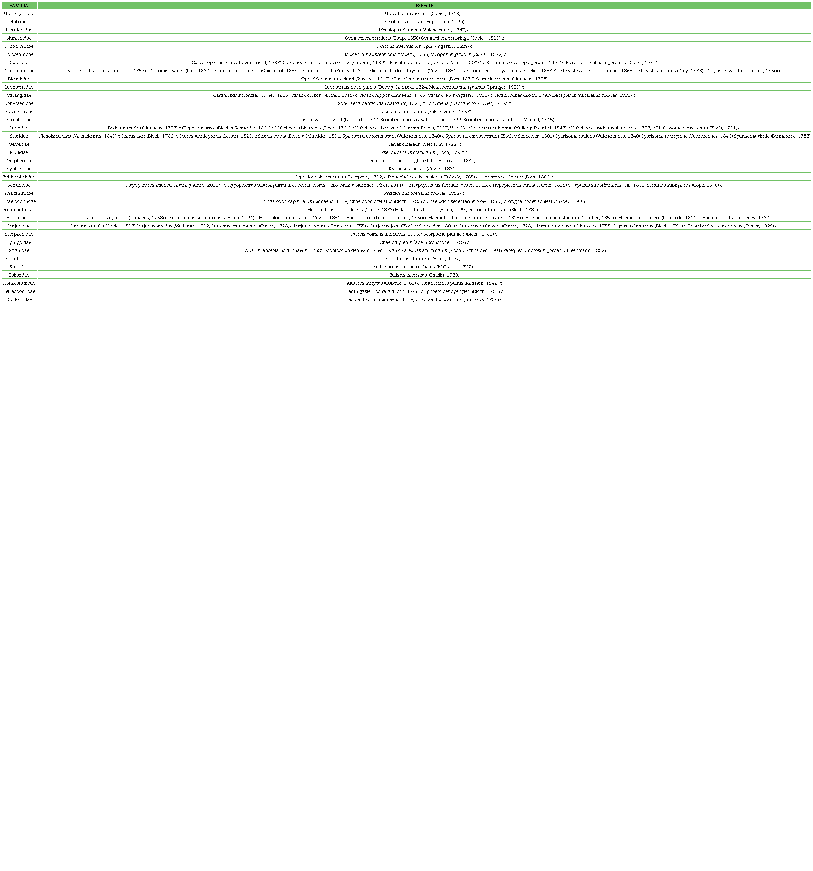 Fricke, R., Eschmeyer, W. N., and van-der-Laan, R. (2018). Online database on genus and species names of recent fishes. [En línea]. Disponible en: http://researcharchive.calacademy.org/research/ichthyology/catalog/fishcatmain.asp. Fecha de consulta: 12 de julio de 2018.