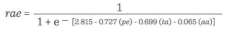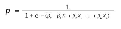 Por su parte, la función logística que permite calcular la probabilidad de que un sujeto pertenezca a una determinada categoría de la población o conjunto, es como se muestra en la ecuación 2 (donde e es la constante base de los logaritmos neperianos, de valor 2.718):