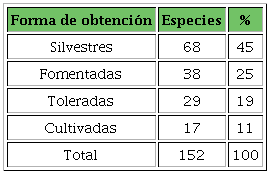La manera de obtener las plantas medicinales de los médicos tradicionales Tének es la siguiente: el 44 % de las especies son silvestres y, por ende, están sujetas a recolección; 26 % son fomentadas, 19 % son toleradas, y las plantas medicinales cultivadas dentro del patio familiar, la parcela o área productiva únicamente representan el 11 % del total de especies empleadas (Tabla 5). En ese sentido, las plantas toleradas son aquellas que crecen espontáneamente dentro o cerca de la milpa o del patio familiar. Su reproducción no es propiciada por los agricultores y sus familias, pero son especies que tienen adaptaciones a las condiciones de manejo de dichas áreas productivas. Las especies fomentadas son las que no han sido domesticadas, pero cuentan con adaptaciones a diferentes ambientes agroecológicos; los productores las valoran y, por ello, guardan sus semillas, para sembrarlas en el siguiente ciclo agrícola. Rendón-Aguilar y col. (2017) consideran a estas especies sujetas a una selección humana incipiente.