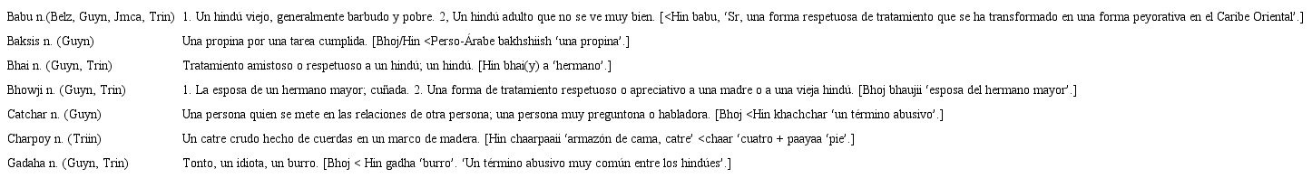 3.0. Contribuciones hindúes al léxico del inglés caribeño
