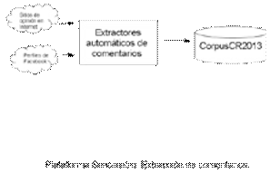 Las frases idiomáticas con las que trabajamos fueron obtenidas en forma automatizada mediante herramientas computacionales desarrolladas ad hoc. En primer lugar recopilamos el corpus CR2013FB utilizando los recolectores de información de la herramienta Sentímetro, tal como se muestra en la Figura 3.