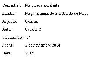 Ahora, si en una de las fuentes de información aparece una noticia como la que se muestra en la , el texto de la noticia expresa el punto de vista del medio de comunicación que la difunde, lo cual puede dar pie a reacciones de los lectores que son publicadas en línea en una serie de intercambios bajo la publicación original. Así, el acceso directo a las opiniones emitidas directamente por los lectores hace muy valioso el análisis de sentimientos, por cuanto permite tomar el pulso de la opinión pública sobre temas específicos; no obstante, la gran cantidad de noticias y comentarios imposibilita realizar manualmente esta labor, de ahí que es necesario desarrollar métodos para emitidos, cada día, en cada uno de los medios, llevarla a cabo automáticamente. El análisis de sentimientos pretende, entonces, identificar y obtener opiniones a partir de comentarios de usuarios de medios informativos a fin de estimar la tendencia del conjunto de opiniones. Siguiendo a Liu y Zhang (2012), en cada texto que contenga una opinión, esperamos obtener la siguiente información: