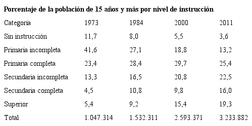 La descripción de los indicadores señalados revela inconsistencias numéricas entre lo considerado “analfabetismo” y “sin instrucción”, con una diferencia porcentual de un 1,2, lo que en el grueso de la población del 2011, año en que se hizo el censo en comentario, representa 40.000 personas más de las estimadas en la Tabla 1.