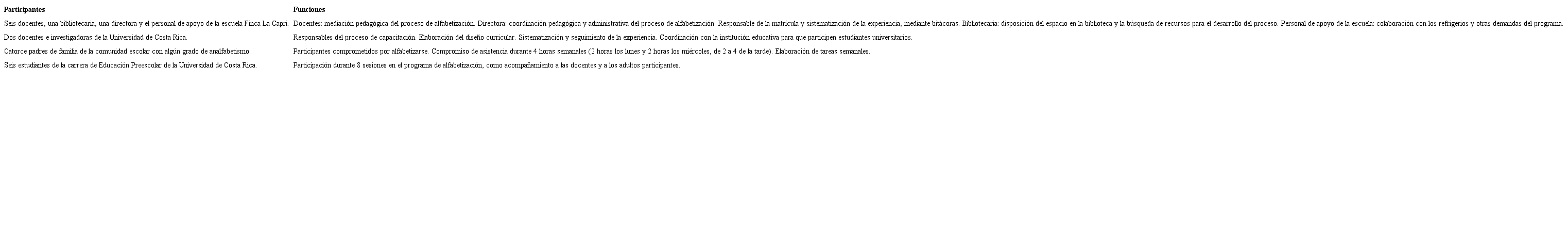 La anuencia y compromiso con la alfabetización de adultos encontrados en la Escuela Finca La Capri, permite que un grupo de seis docentes y su directora inicie un proceso de capacitación en alfabetización de adultos, de 40 horas, incorporado en el proyecto de extensión docente ED-3158, a cargo de la profesora Marielos Murillo y con la colaboración de la Dra. María de los Ángeles Carpio.