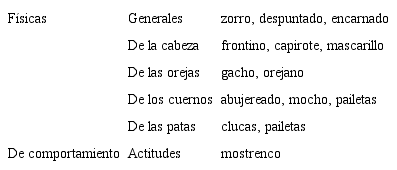 En el siguiente cuadro se presenta una sistematización de otros rasgos del ganado vacuno y equino con base en el léxico seleccionado.