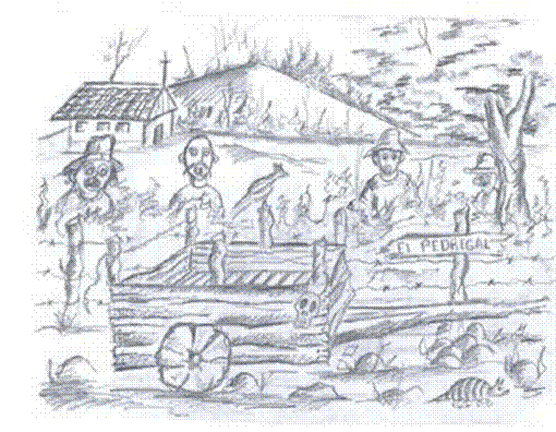 Un día, en el lugar llamado Potrerillos, a orillas del Río Tempisquito, uno de los arrieros dijo a sus compañeros, mientras descansaban un momento, lo siguiente: - Me vine de mi país, pero presiento que no volveré jamás.