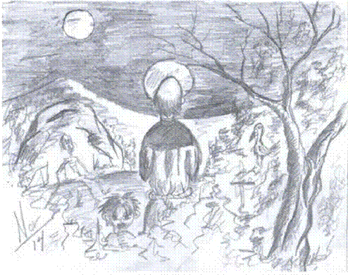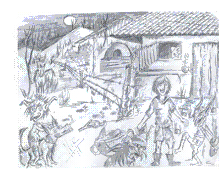 Era tal la alegría de estos pequeños seres que muchos despertaban y se asomaban por las rendijas de las paredes de sus casas. Los pobladores veían con mucho interés ese precioso desfile de pequeñas criaturas vestidas de color rojo con sus pies descalzos que, al amanecer, podían verse dibujados en el polvo o arena de las calles y caminos por donde transitaron tranquilamente, puesto que nadie les causaba daño alguno.