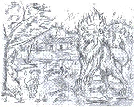 Por eso, las mujeres que llevaban dentro de su vientre un bebé temían ser devoradas por tan fiero animal, ya que sus padres les habían contado que, en épocas lejanas, una mujer embarazada se fue a la quebrada a lavar ropa y el león se le acercó la mató y le sacó a su bebé. Luego, jugó un rato con la criatura y lo devoró junto con su madre.