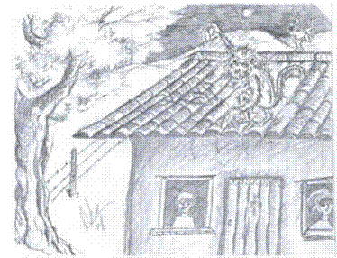 Este espanto sube a los tejados y suena como si arrastraran cadenas, brinca en los tejados y hacen ruidos fuertes dando patadas, silbando, riendo a carcajadas, gritando y pasando las uñas por los techos. Todo este escándalo perturba y no permite dormir tranquilamente a los inquilinos.
