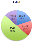 En la Figura 2. , 1se muestra que la edad del 50 % de las personas es entre 30 y 40 años; un 20 % entre los 18 y 20 años; un 17 % entre 21 y 30 años; y un 13 % en edad de 40 a 50 años. Lo que significa que todos los migrantes que fueron encuestados se encuentran en una edad productiva para realizar actividades laborales en la frontera.