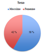 En la Figura 2.2, el 58 % pertenecen al sexo masculino y el 42 % al sexo femenino. Es decir, que de la muestra de este estudio, la mayoría son del sexo masculino.