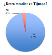 Por otro lado, existe un alto nivel de motivación con fines de permanecer en la frontera Tijuana-San Diego y el interés de esos nuevos migrantes o new comers es estudiar algún oficio en Tijuana, realizar estudios de educación básica y educación media superior. Para estos migrantes, dominar el idioma español les dará la oportunidad de realizar estudios en el sistema educativo mexicano. La Figura 2.8 muestra que a un 97 % de los informantes les gustaría estudiar, con el fin de mejorar su estilo de vida y estatus económico. En contraposición con el 3 %, a quienes no les interesa realizar estudios.