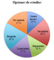 Para los nuevos migrantes multilingües y centroamericanos, tener una oportunidad de permanencia les dará la opción de realizar estudios en territorio mexicano. En la Figura 2.9 se muestra que a un 20 % le gustaría realizar estudios de posgrado, a un 20 % realizar estudios de secundaria, es decir, que estos únicamente cuentan con estudios de educación básica. Un 17 % tiene estudios de licenciatura y a un 13 % le gustaría realizar una carrera técnica que les permita trabajar en oficios tales como: jardineros, cocineros, ayudantes de cocina, meseros y recepcionistas. Finalmente, un 17 % no contestó este apartado donde se les preguntaba sobre el tipo de opciones de estudios que desean realizar. Se infiere que este porcentaje de migrantes no desea estudiar.