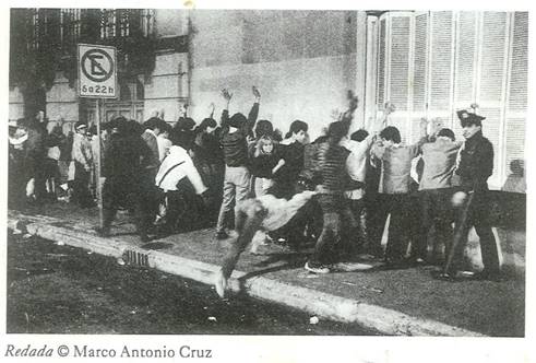 Redada nos remite al inicio de esta crónica de imágenes: los jóvenes. En Monsiváis, la reflexión de la juventud y del control que se da en la sociedad tiene su asidero en mayo de 1968. Esta fotografía nos recuerda que ante el desorden y las nuevas formas que encaran la cotidianidad finisecular de México, el poder siempre está presente como regulador de la sociedad, imponiéndose y sometiendo, al igual que lo hace el consumo con la población.