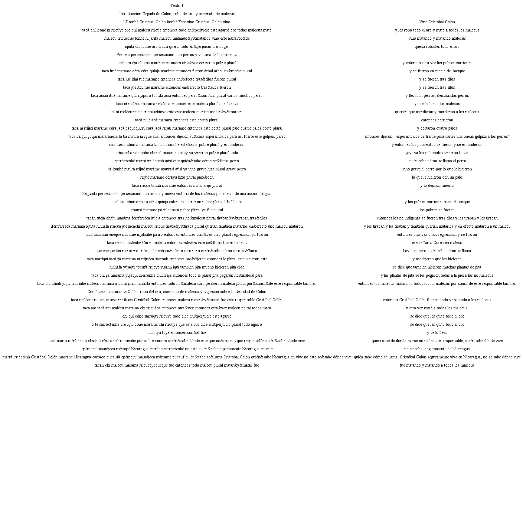 En este sentido, este trabajo constituye un pequeño aporte encaminado a subsanar este vacío, al presentar, en malecu y en su respectiva traducción al español, dos textos: uno relativo al supuesto enfrentamiento de los malecus con Cristóbal Colón y los conquistadores españoles que lo acompañaban, y otro relacionado con la participación de los malecus en una presunta batalla que habrían sostenido todos los actuales pueblos indocostarricenses contra Colón y su ejército.