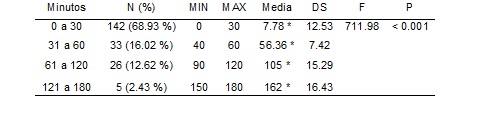 Cuatro de cada diez participantes del estudio no realizaban ningún ejercicio físico, y solamente una de cada cinco personas se ejercitaba a diario. Más del 65 % de los sujetos caminaba como forma de ejercitarse, con una mayor proporción de quienes lo hacían a paso lento respecto a quienes lo hacían a paso rápido. Los deportes menos practicados fueron el yoga (3.88 %), el baloncesto (3.39 %) y la natación (6.31 %). Por otra parte, un 87.86 % de los estudiantes se desplazaba con mayor frecuencia en automóvil o autobús, contra un 10.68 % que caminaba o manejaba bicicleta al trasladarse (Chi2 = 161.340 con nivel de significancia p ˂ 0.001). Casi el 70 % de los sujetos dedicaba en promedio únicamente 7.78 minutos diarios a realizar algún ejercicio, como muestra la tabla 3.