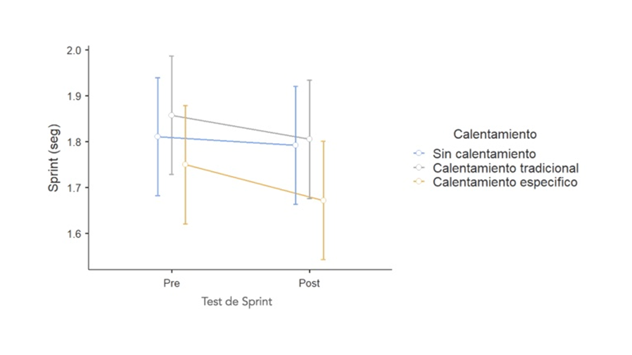 Las mejoras en los valores tras realizar un calentamiento específico siguen la línea de otros estudios en jugadores de fútbol (Ayala y Sainz de Baranda, 2010) futbolistas universitarios (Jerez-Mayorga, Contreras-Díaz y Campos-Jara, 2013) o tenistas junior de élite (Ayala, Moreno-Pérez, Vera-García, Moya, Sanz-Rivas, y Fernández-Fernández, 2016); si bien, todos ellos utilizaban el sprint de 20 metros, otros utilizaban tiempos de calentamiento cercanos a 30 minutos (Ayala et al., 2016), aspecto que no puede ser considerado en el contexto escolar debido a la limitación de tiempo.