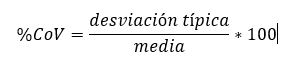 El porcentaje del coeficiente de variación (%CoV) tanto de tasa de velocidad y el ritmo cardíaco de cada vuelta, se calculó siguiendo la siguiente fórmula (Haney 2010; Haney, y Mercer, 2011):