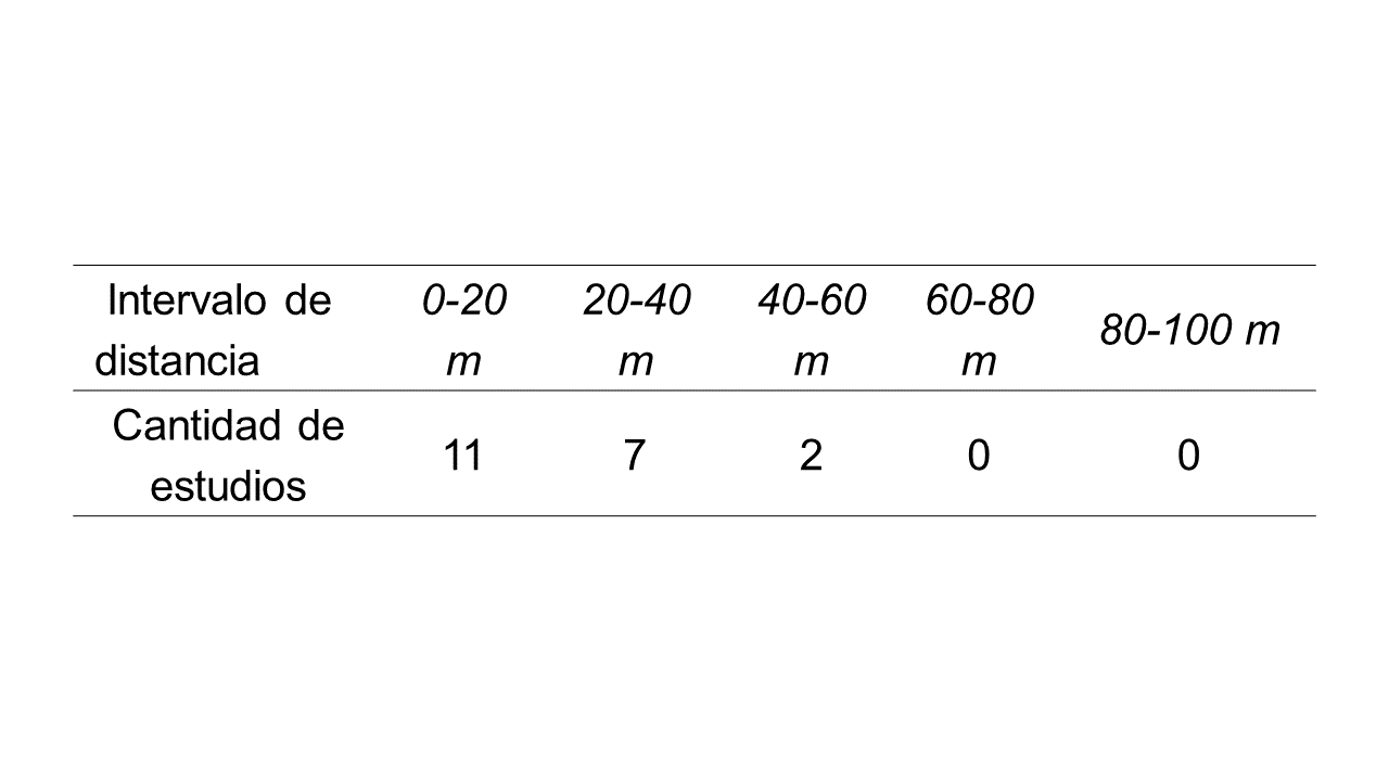 También, otra limitante de este campo de investigación es la escasa cantidad de estudios que se interesan en el efecto de los tipos de entrenamiento en la velocidad en distancias mayores a los 40 metros y en velocistas (Haugen, Seiler, Sandbakk y Tønnessen, 2019), de forma que se pueda analizar su efecto en la resistencia a la velocidad o en la velocidad máxima para deportes individuales como el atletismo, donde se conoce que el valor de velocidad máxima se alcanza entre las distancias de 60 y 80 metros y no en 40 metros o antes como en el caso de los deportes colectivos (Haugen et al., 2019; Slawinski et al., 2017). En la tabla 1, se reporta la cantidad de investigaciones que han estudiado el efecto agudo de alguno de los tipos de entrenamientos de fuerza, velocidad, velocidad contra resistencia y pliometría en la carrera de velocidad por cada intervalo de 20 metros. En ella, se puede apreciar la falta de estudios donde se evalúen las fases de velocidad máxima y resistencia a la velocidad.