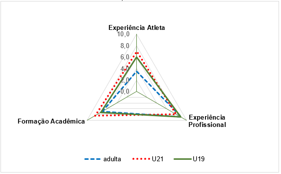 Por otro lado, las FC procedentes de la EA fueron las menos valorizadas entre los entrenadores y entrenadores asistentes investigados, incluso con las elevadas experiencias atléticas competitivas internacionales vivenciadas por el entrenador de la selección U21 y el entrenador asistente de la selección U19 en Juegos Olímpicos y Campeonatos Mundiales. En este caso, los resultados pueden indicar que estas experiencias pueden estar aliadas a otras situaciones distintas del proceso de entrenamiento, como en la toma de decisiones en las relaciones interpersonales entrenador/entrenador asistente/atleta (Côté y Gilbert, 2009).