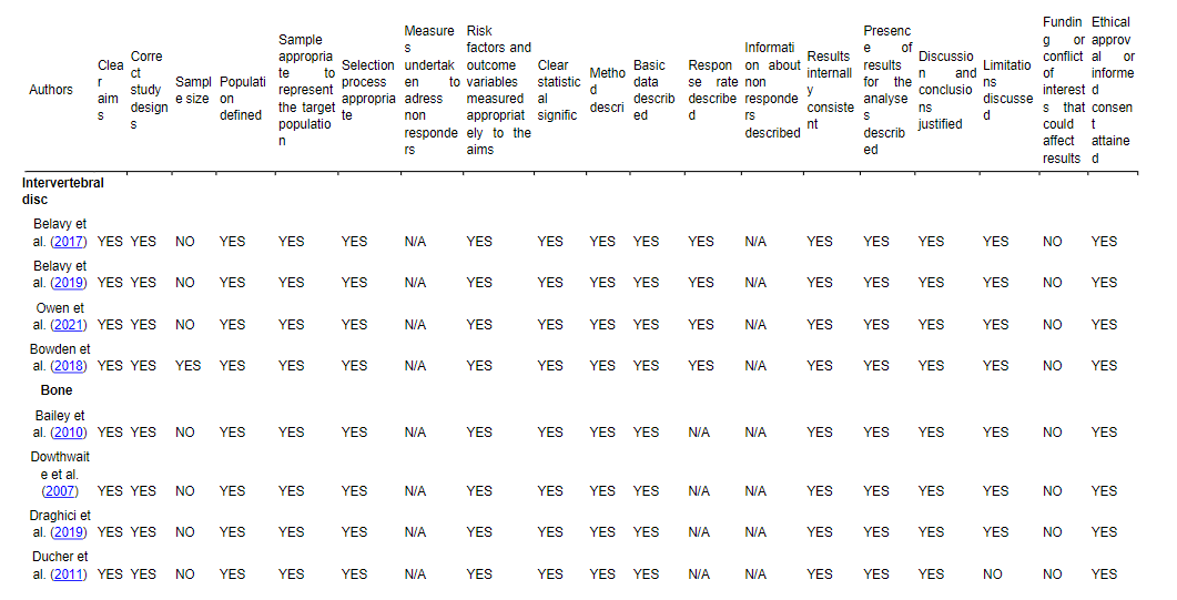 For bone all criteria were met; only two studies had non-responders and both had measures undertaken to address non-responders described, response rate described and information about non-responders (Hughes, Gaffney-Stomberg, et al., 2018; O’Leary et al., 2019).