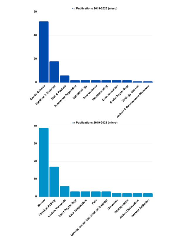 From this point of view, it is critical for scientists in Costa Rica to broaden their areas of knowledge and interrelate with issues from other areas of study and research. It is from problem-solving with an interdisciplinary and multidisciplinary approach that we enrich our own area of knowledge. In this sense, from the HMS, there has been a great interrelation with diverse areas (see Figure 4). The interplay between HMS and other disciplines, such as medicine (Gamonales et al., 2023), nutrition (Capitan-Jimenez & Fernando Aragón-Vargas, 2022; Gamonales et al., 2022; Gomez-Miranda et al., 2022), psychology (Gutiérrez-Vargas et al., 2021; Hernández-Gamboa et al., 2022; Jiménez-Maldonado et al., 2018), occupational health (Crowe et al., 2022; Mora et al., 2022) in Costa Rica, has allow HMS professional to expand their knowledge and create new opportunities of research. This type of collaboration allows for providing solutions to a sector of the population from a broader paradigm.
