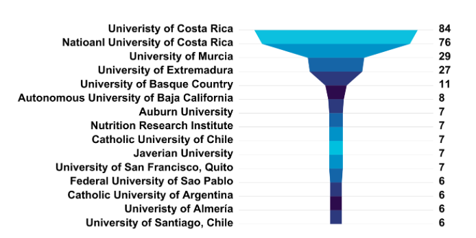Collaboration at an international level is crucial for the development and growth of high-quality research in HMS in developing countries like Costa Rica. By collaborating with experts from different parts of the world, researchers in Costa Rica can access cutting-edge technology, methods, and expertise. This can help them overcome resource limitations and generate innovative research that can significantly advance the field. Additionally, international collaboration promotes the exchange of ideas and perspectives, which can lead to a more comprehensive understanding of the field and its applications (Dusdal & Powell, 2021; Green & Johnson, 2015). This, in turn, can lead to better solutions for addressing the health needs of the population. Human movement scientists in Costa Rica have a wide network of partners including University of Extremadura, University of Murcia, Autonomous University of Baja California among others (see figure 5.).